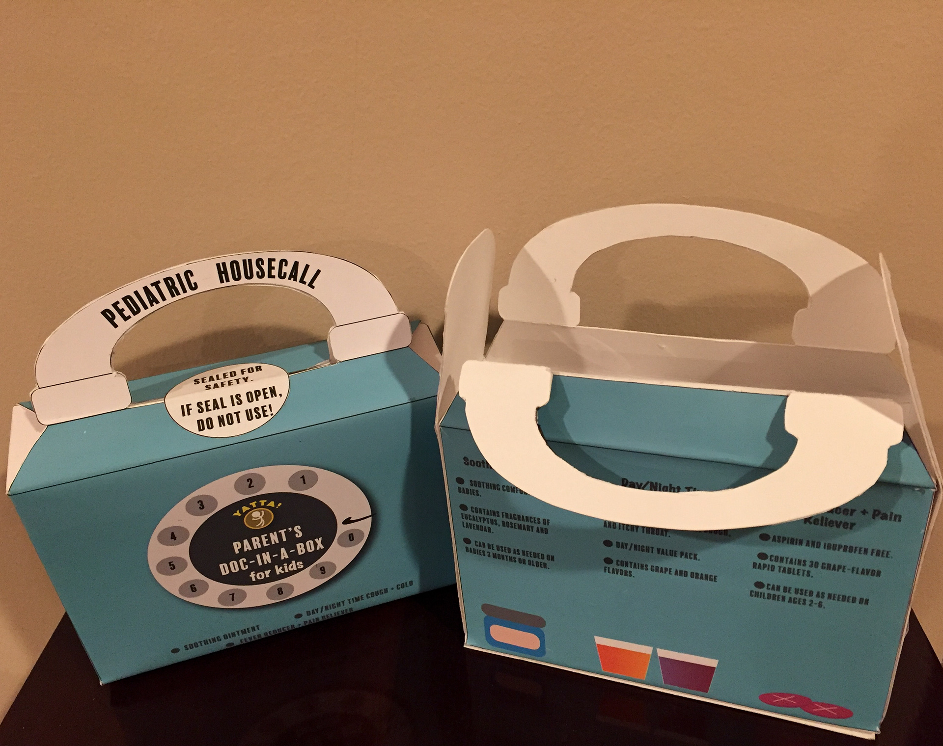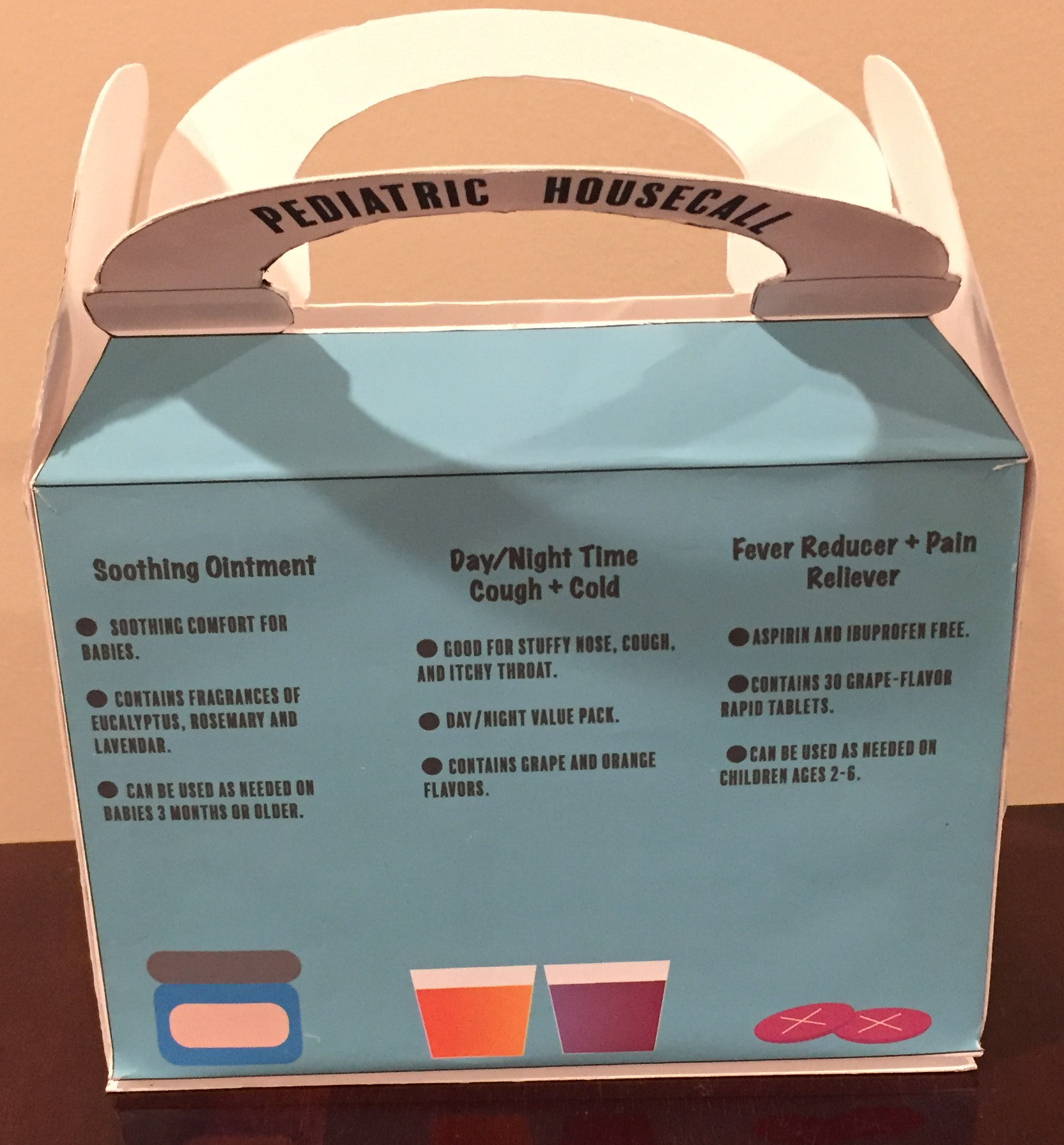 Like "Bright Thoughts Bulbs", the Doc-In-A-Box was another project involving packaging. The main focus was to create a medicine box for children that contained pain reducer, day/nighttime cough drinks, and soothing oils. I also created labels for the medicine bottles that would be placed inside.
